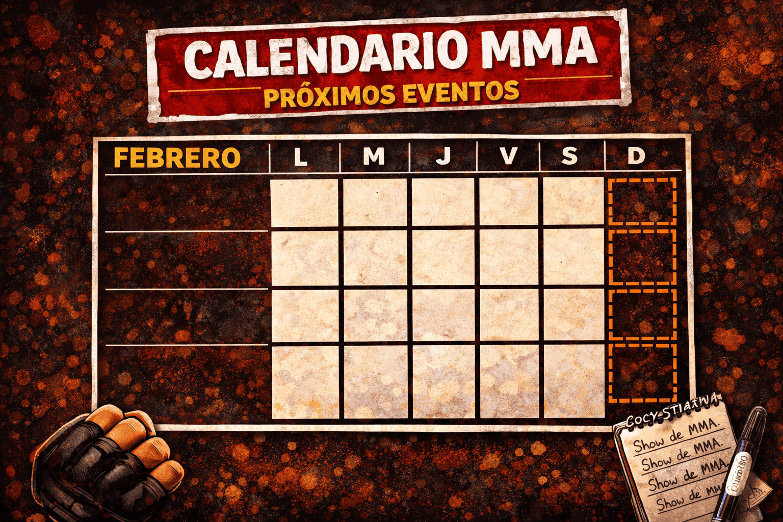 Repasamos el calendario de eventos de artes marciales mixtas que tenemos hoy sábado 14 de febrero de 2026 por todo el mundo. Sin UFC ni Bellator o PFL, ¿qué más peleas se darán en el deporte que tanto amamos?