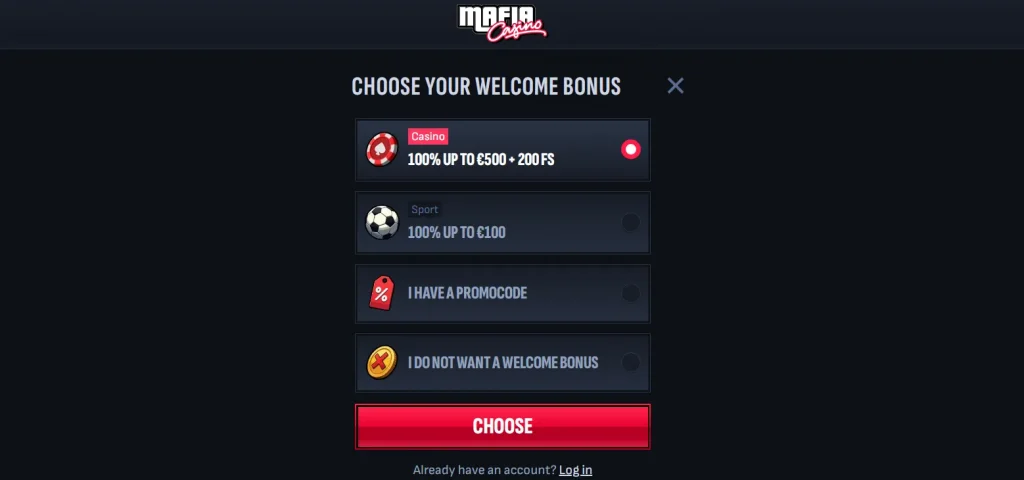 | Mafia Casino | 100% hasta 500€ + 200 FS + Bonus Crab | MuchBetter, MiFinity, Jeton, tarjetas, cripto | €10 | 1-2 días en e-wallet; hasta 24 h en cripto | Sitio promocional del operador | 6.8/10 |