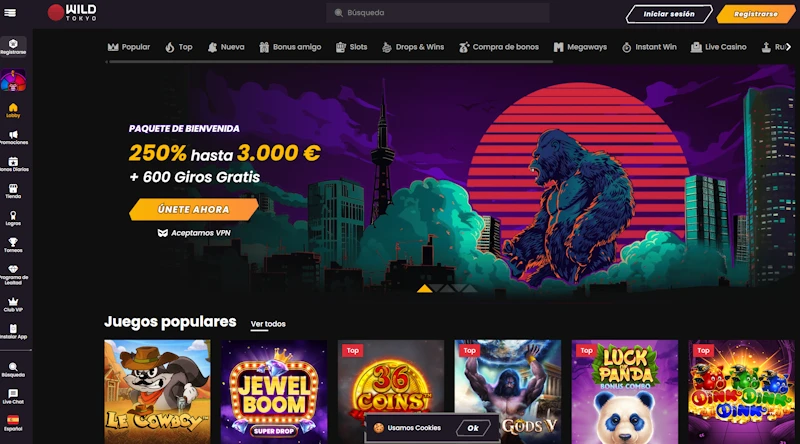 | WildTokyo | Curaçao, declarada | no declarado públicamente | no declarado públicamente | hasta 500€ + 250 FS | tarjetas, e-wallets, vouchers, cripto | fuera de DGOJ |
