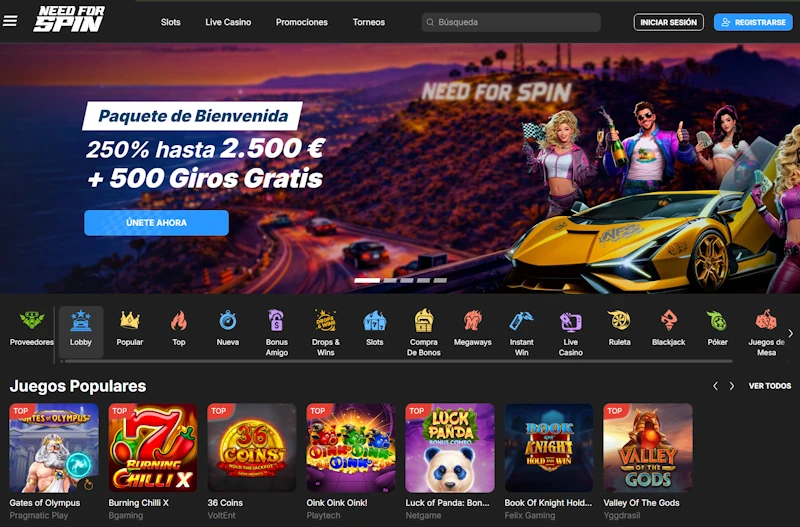 | Need for Spin | Curaçao, declarada | 20€ | 20€ | hasta 1.000€ + 300 FS | tarjetas, e-wallets, prepago, cripto | fuera de DGOJ |